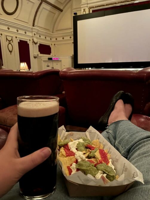 Ici, on vous distribue un menu avant la séance, et on peut manger et boire plein de bonnes choses (mention spéciale pour les « milk chicken bites ») en regardant le film du jour installé dans un fauteuil ou un divan ultra confortable (genre, je n’ai jamais regardé un film aussi bien installée que ça !). J’aime tellement cet endroit que j’ai décidé d’y retourner à chacun de mes voyages à Londres !