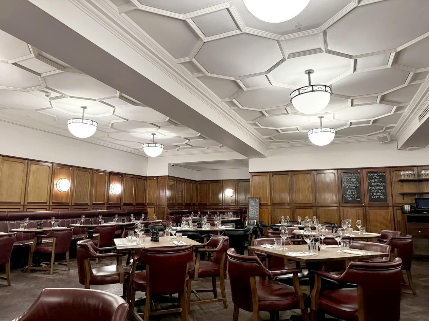 La décoration de l’endroit est très glamour, avec des « booths » qui permettent de manger en tête en tête sans être dérangés par les tables d’à côté. Côté cuisine, le restaurant sert un mélange de plats classiques de cuisine anglaise et russe. Je vous recommande leur tourte au poisson, par contre j’ai été un peu déçue de leur « lobster mac & cheese », leurs macaronis au homard, plutôt sec. Réservation fortement recommandée. La carte est un peu moins chère le midi.