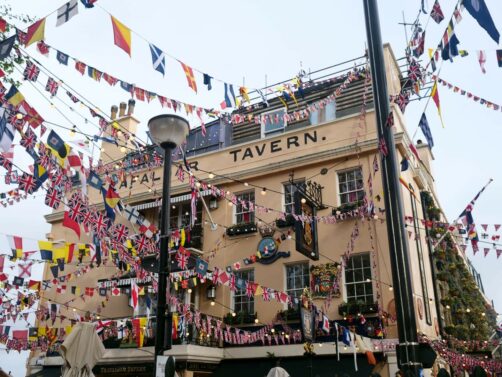 Située près du Old Royal Naval College à Greenwich, cette taverne historique du 19ème siècle entourée de banderolles de drapeaux est l’une des dernières survivantes de l’époque où Greenwich était prisée pour aller manger le long de la Tamise. De grands noms tels que Charles Dickens, Turner, Richard Doyle, etc. y ont d’ailleurs mangé.