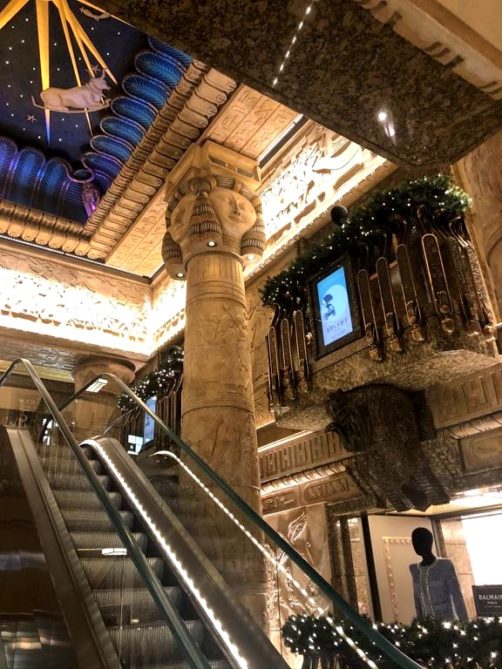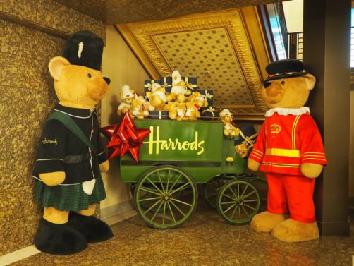 Après avoir pris le tube depuis la gare de St Pancras jusqu’à Knightsbridge, nous avons commencé par une petite séance shopping chez Harrods, le grand magasin de luxe historique de Londres, à voir ne serait-ce que pour son splendide escalier égyptien et ses magnifiques Food Halls où vous trouverez plein de bonnes choses à manger.
