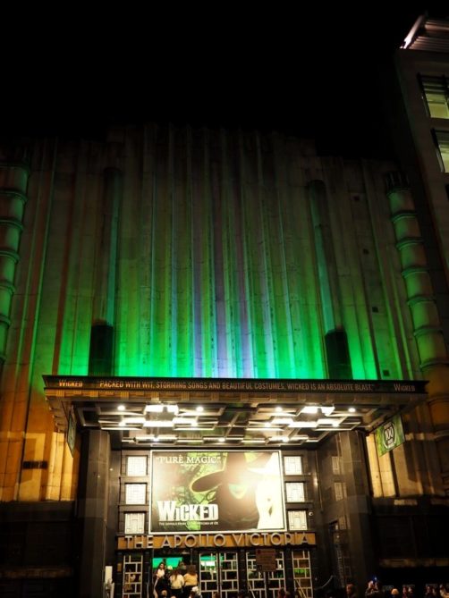 Le West End est également le quartier des théâtres, et comme c’était mon anniversaire on a décidé de fêter ça en allant voir une des comédies musicales les plus populaires du moment, Wicked au Apollo Victoria Theatre, une comédie musicale basée sur l’univers du Magicien d’Oz. Par contre je vous recommande de prendre des jumelles si vous choisissez un siège loin de la scène… la salle est très grande !