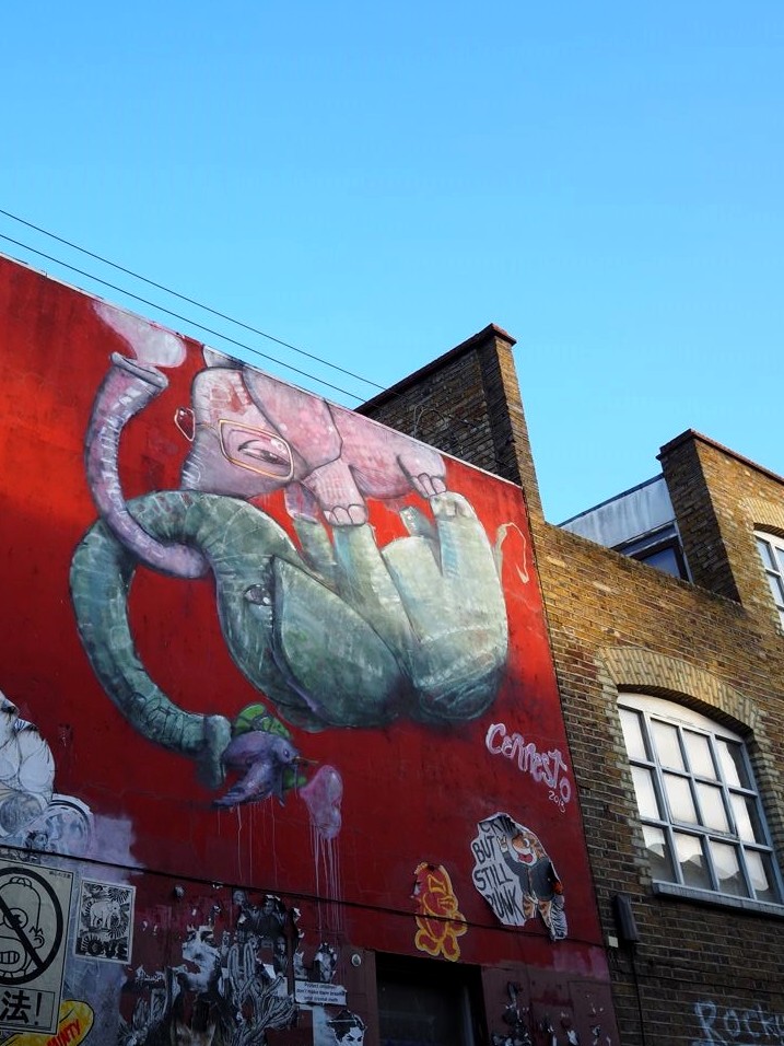 Le troisième jour de ce citytrip à Londres fut consacré aux « nouveaux » quartiers à l’est du centre-ville : de Bethnal Green, en passant par Hackney, Shoreditch, la City, avec également un petit tour par la rive sud de la Tamise. Le paradis pour les amateurs de street art !