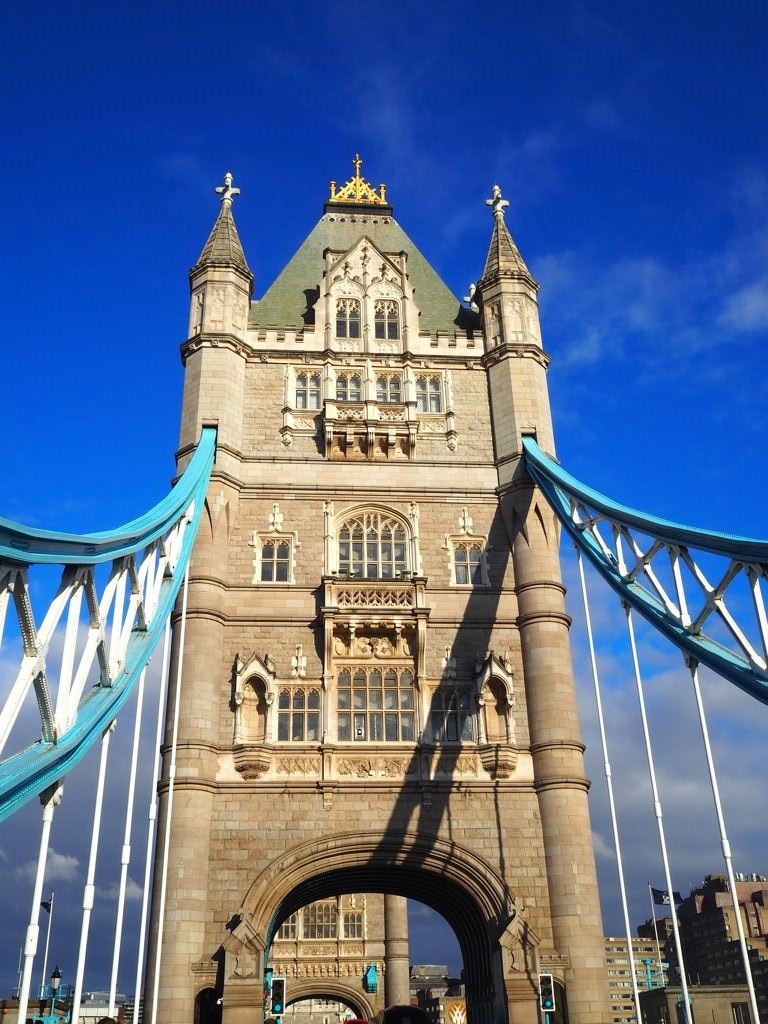 Nous sommes ensuite arrivés au Brick Lane Sunday Market, un très chouette marché de rue avec notamment plein de délicieux stands de street food. Si vous voulez manger sur le pouce, c’est l’endroit idéal ! En ce qui nous concerne, on a continué à pied en direction de la City, le quartier business de Londres. Nous sommes passés à côté de la Tower of London (je l’avais visitée lors de mon tout premier voyage à Londres, il faudrait peut-être que j’y retourne un jour…) puis nous avons traversé le Tower Bridge.