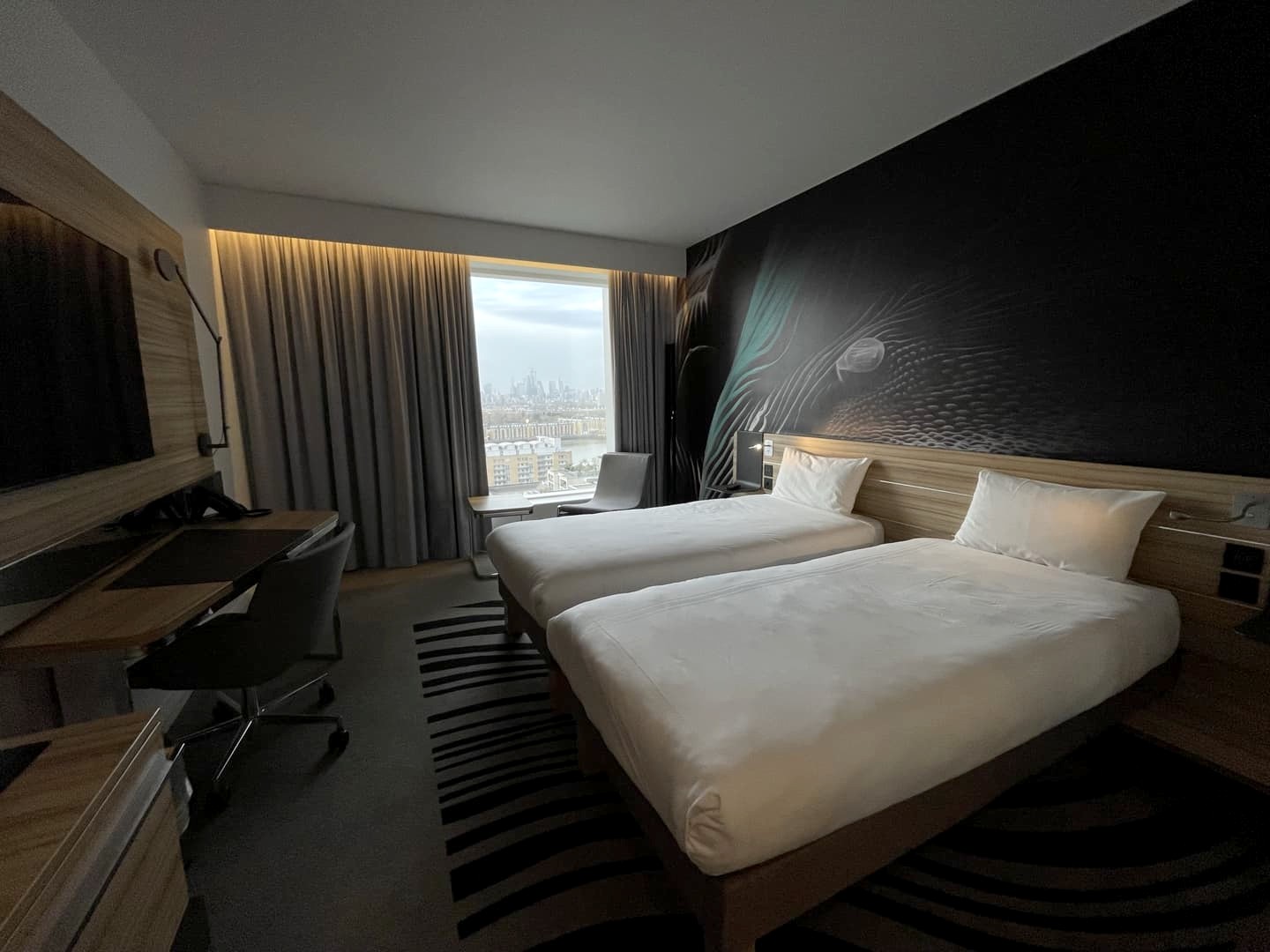 Cet énorme hôtel offre des vues panoramiques sur Londres, depuis les chambres mais aussi (et surtout) depuis son bar et son restaurant occupant les derniers étages. On avait choisi de payer un supplément pour une chambre dans les étages supérieurs, mais au final je pense qu’une chambre « standard » est bien suffisante (et un bien meilleur rapport qualité-prix).