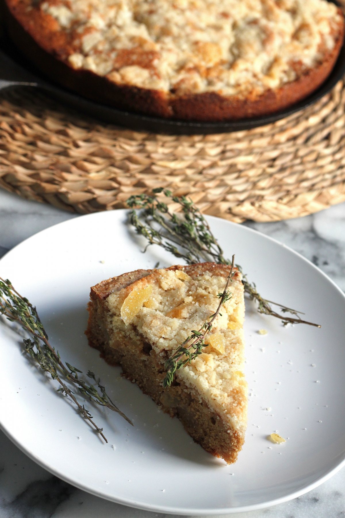 Is there anything better than a dense, rich, buttery cake studded with seasonal fruit and topped with a crispy crunchy lid? How about one that’s also packing whole wheat flour, ground & crystalized ginger, and even some thyme! Oh, and it travels like a dream. A major plus for this holiday season that is truly…