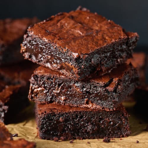 If you love brownies with crackly tops and tons of chocolate flavor, these death by chocolate brownies are for you! Unsweetened cocoa powder and chocolate chips create fudgy brownies that are exceptionally rich and decadent. The hardest part about this homemade brownie recipe? Letting them cool completely before digging in! You’ll Crave these Brownies Chocolate…