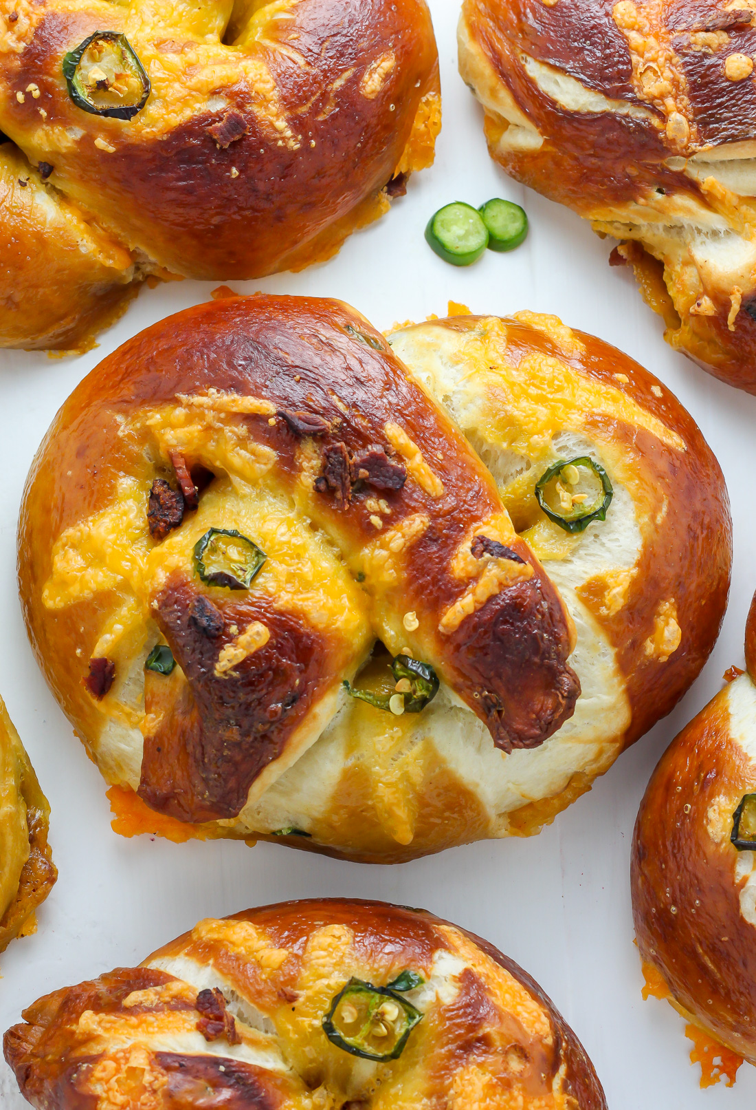 Bacon and Cheddar Stuffed Jalapeno Soft Pretzels