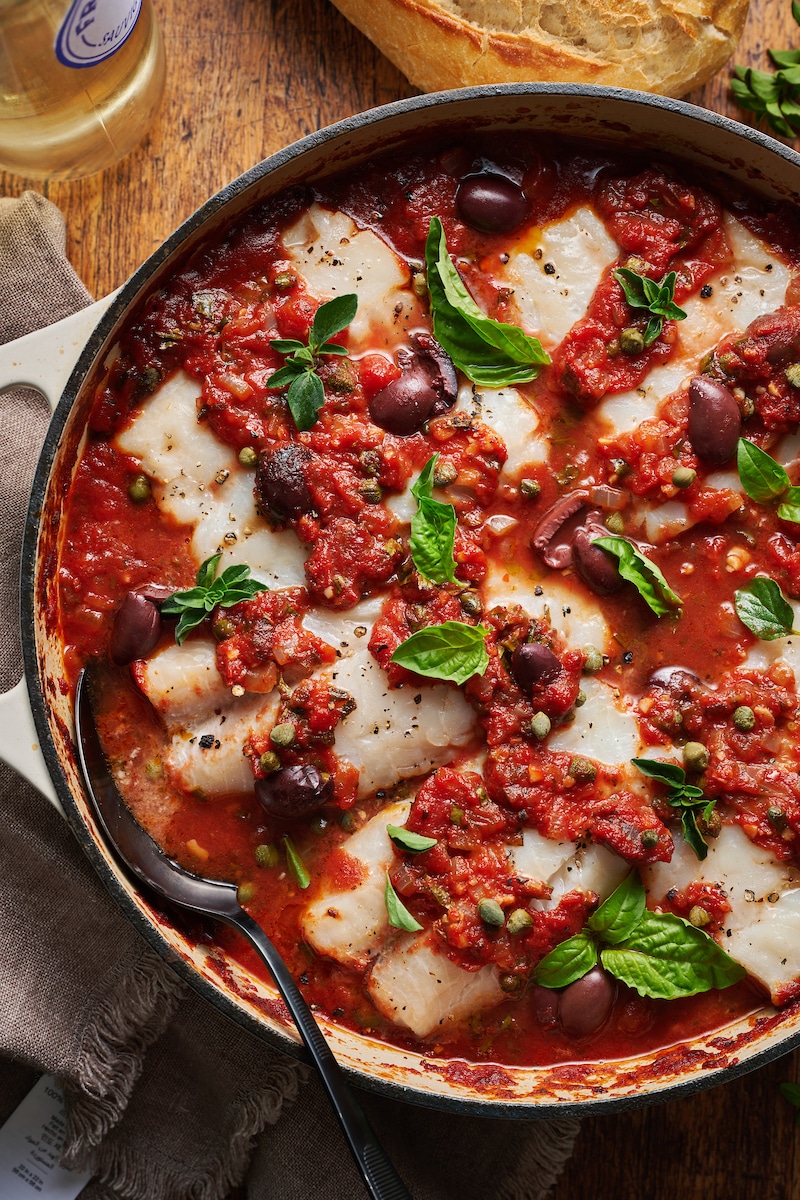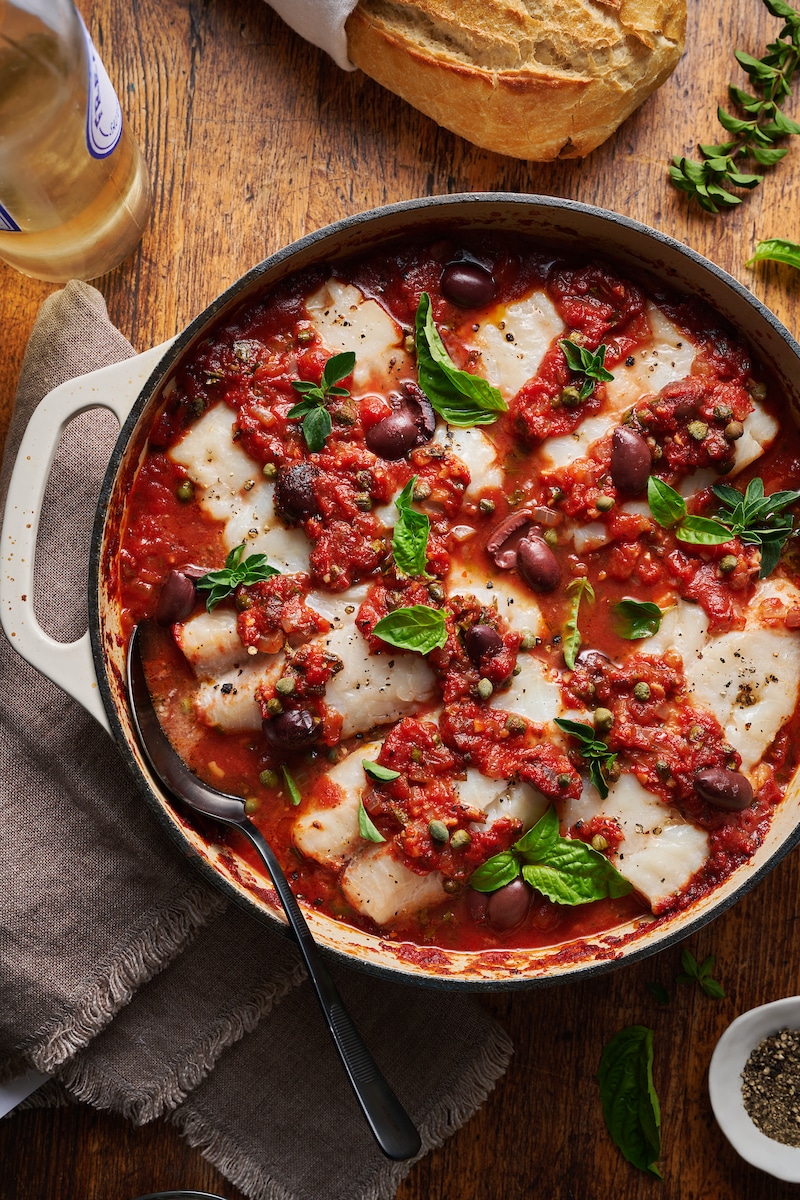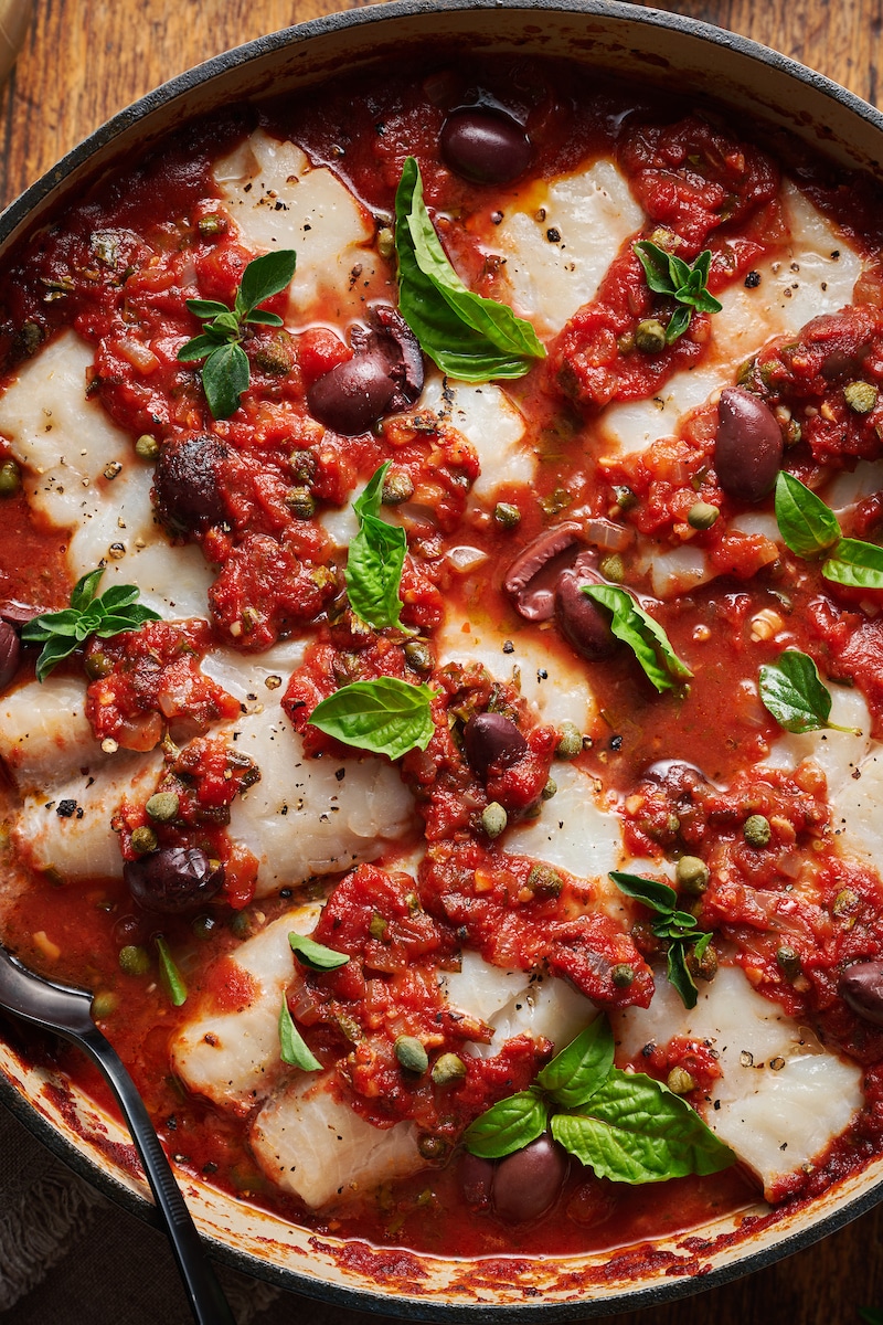 Baked Cod in Puttanesca Sauce