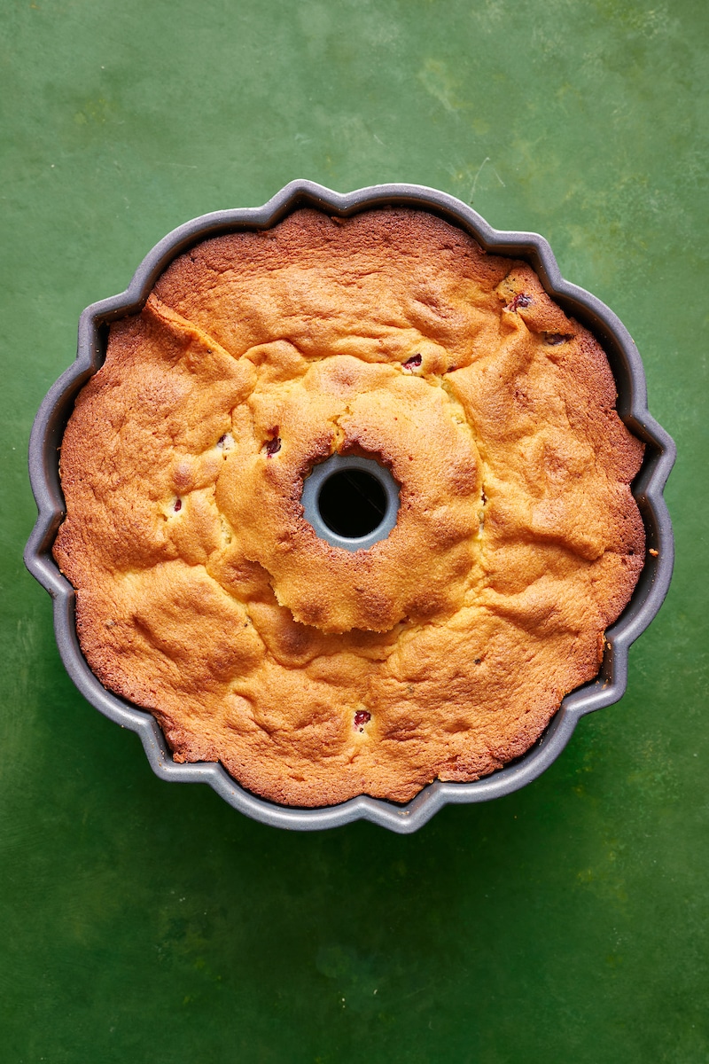 - Generously grease a 10-inch (12-cup) bundt pan, being sure to coat all of the nooks and crannies. I suggest using a non-stick baking spray that has flour in it, or greasing the pan with shortening or butter, then dusting it with flour. Scrape the cake batter into the pan and, using a rubber spatula, evenly smooth the top.