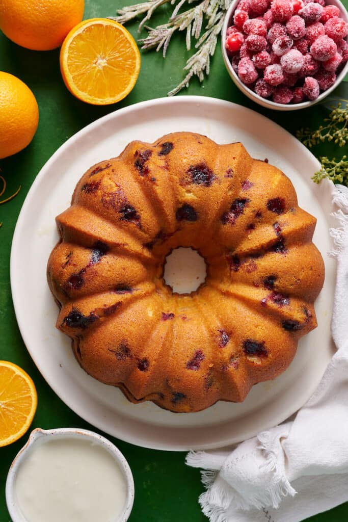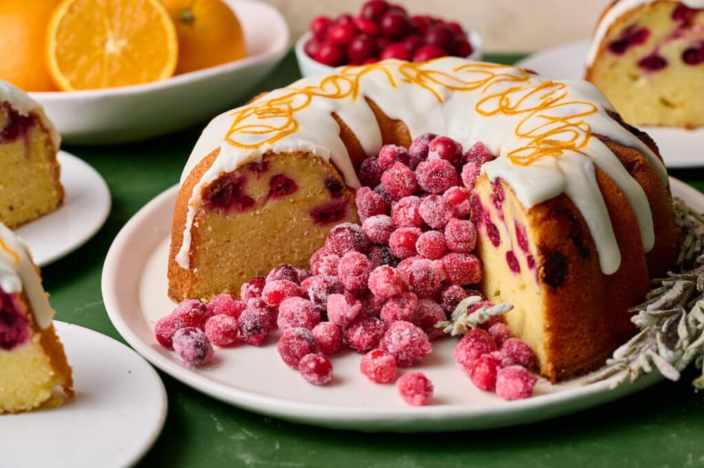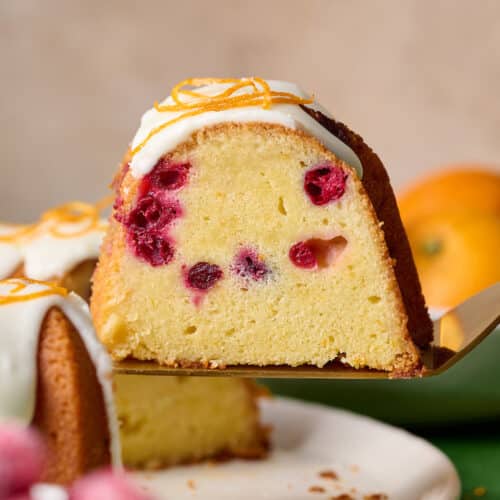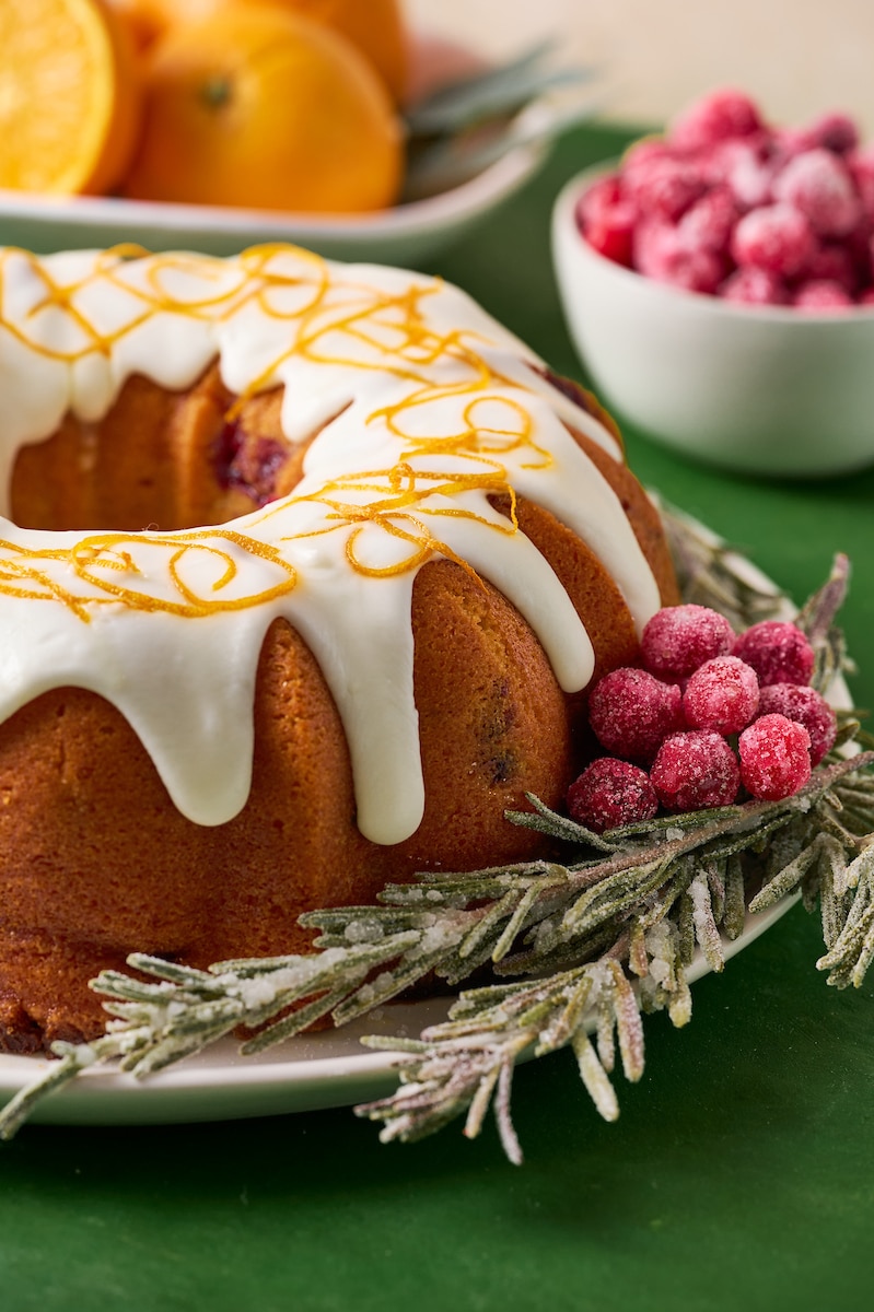 Today, we welcome a new bundt into the family! This cranberry and orange beauty is exploding with orange flavor thanks to orange zest, orange juice, orange soaking syrup, and an orange glaze! Fresh cranberries inside and sugared cranberries on the outside add flavor and color. But don’t worry… it doesn’t taste like cranberry sauce.