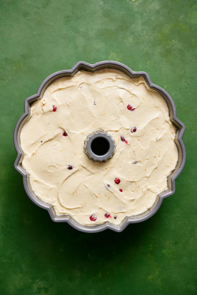 - On low speed, add in the flour mixture, mixing just until combined. Gently fold in the cranberries. Be sure not to over mix there or your cake will be dry!