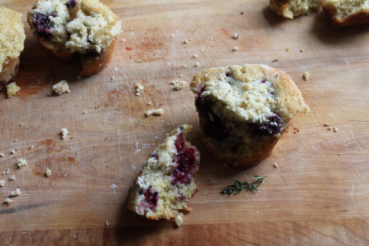 These muffins have an abundance of sparkling fresh flavor packed into their moist interior: Lemon, blackberry, and thyme are a power trio.