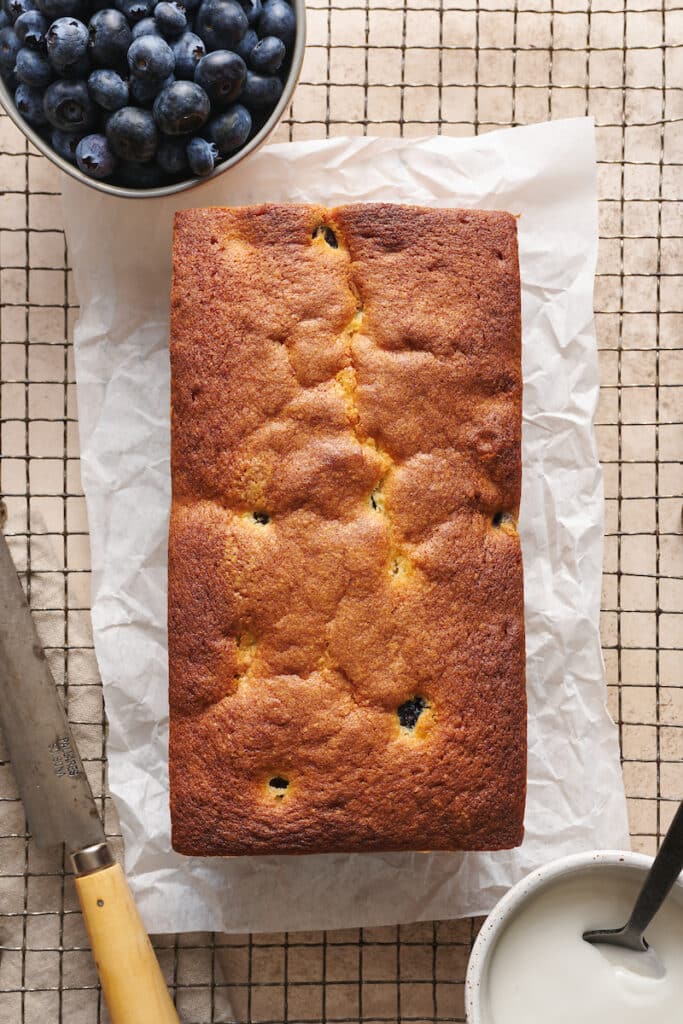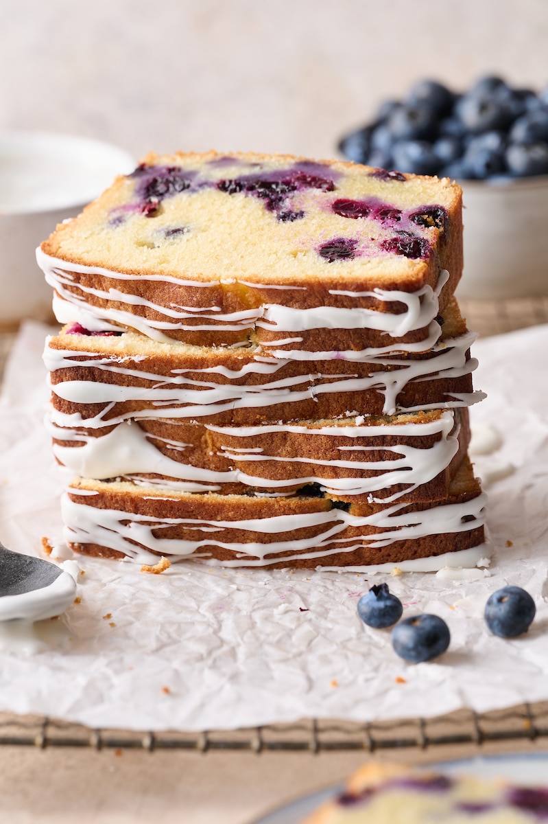 Unlike a lot of blueberry cakes that incorporate lemon, I keep this cake ALL about the blueberries! But if you want to add a little lemon flavor kick, use lemon juice instead of milk in the glaze. It’ll add a subtle lemon flavor while still letting the blueberries shine.
