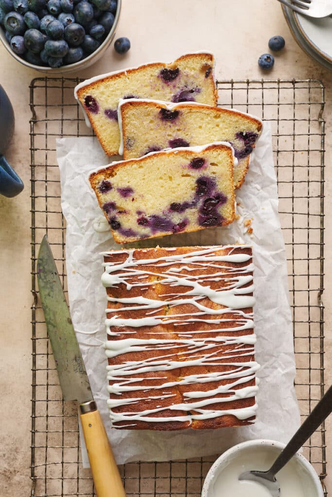 I really don’t suggest baking this recipe in a bundt pan or tube pan. It was created specifically to be baked in a loaf pan. If you want a blueberry bundt cake, use my recipe for the best blueberry bundt cake instead… I know you’ll love it.