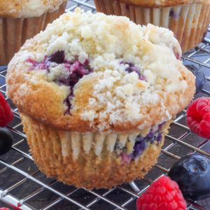 Blueberry-Raspberry Muffins with Streusel Topping
