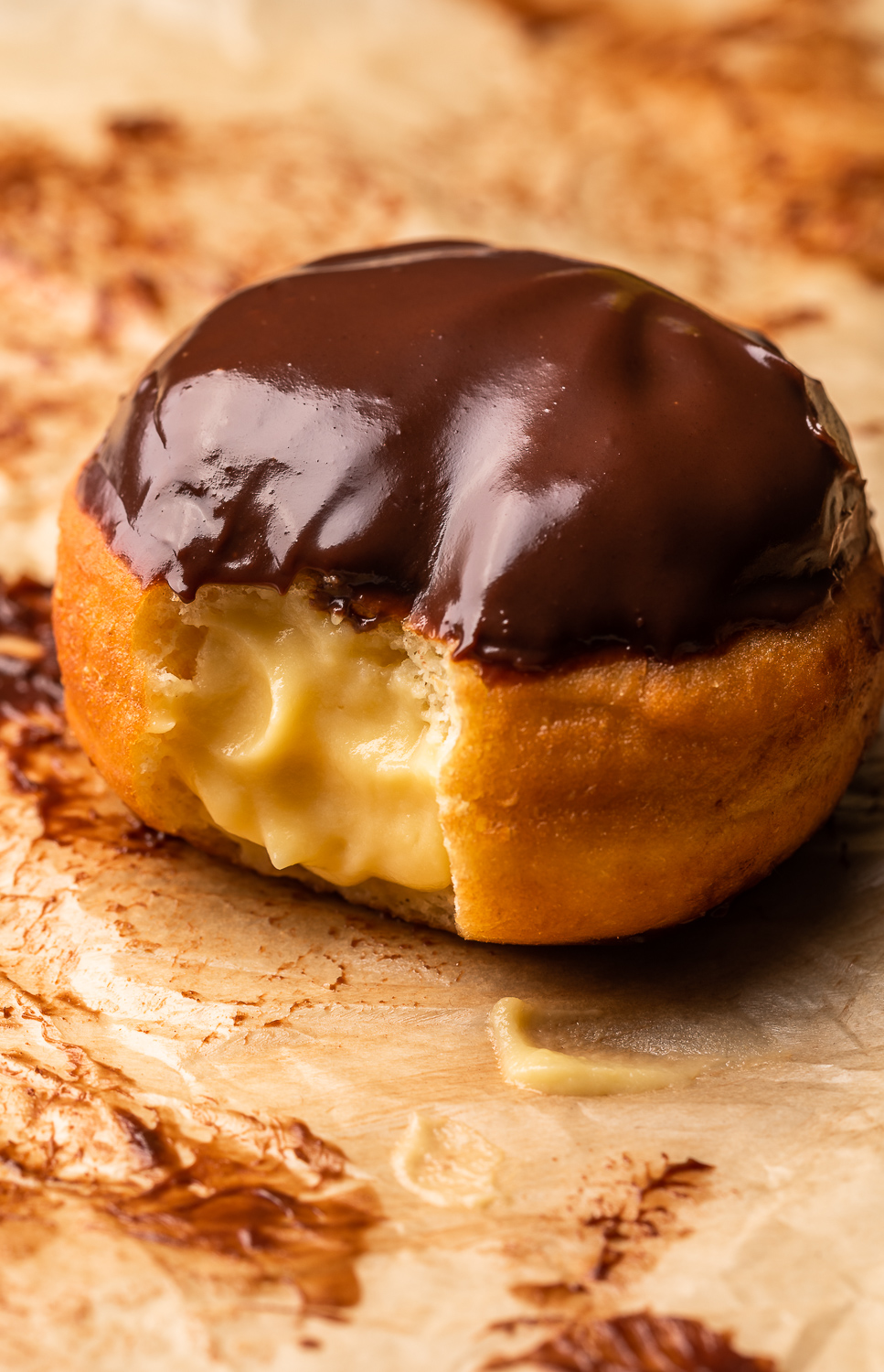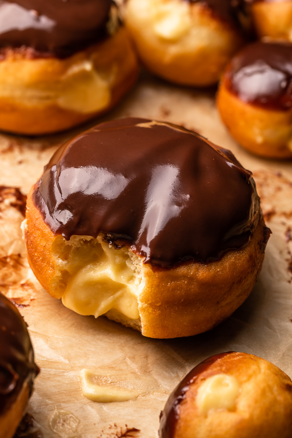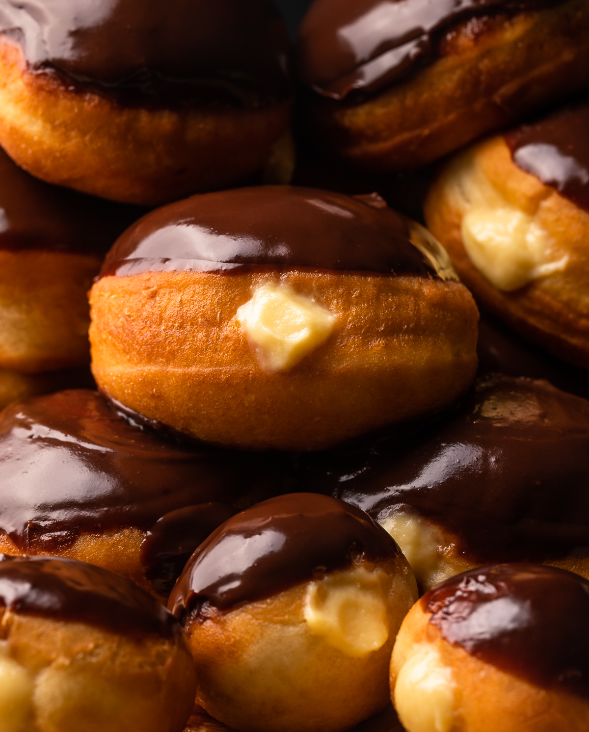 Fluffy Boston Cream Donuts are stuffed with pastry cream filling and dipped in a rich chocolate glaze! Don’t let the deep frying scare you off, because this recipe is worth every step. And so much better than anything you’ll get from the donut shop.