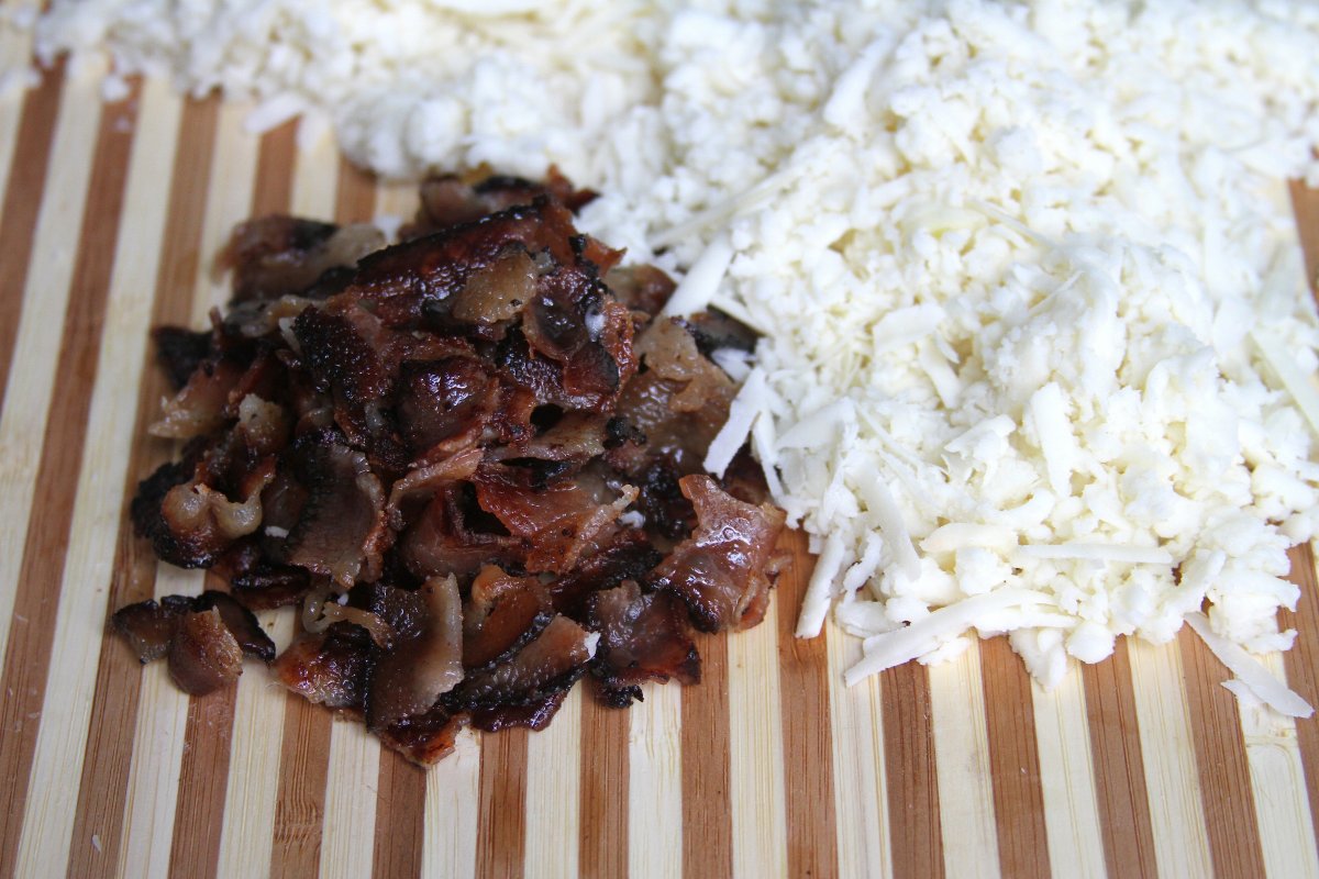 Fry your bacon in a large skillet, cooking until just crisp, then transferring to paper towels to cool. Be careful not to overcook your bacon!