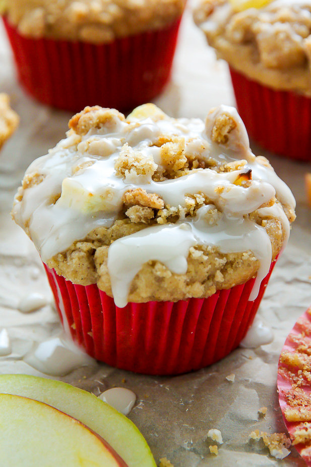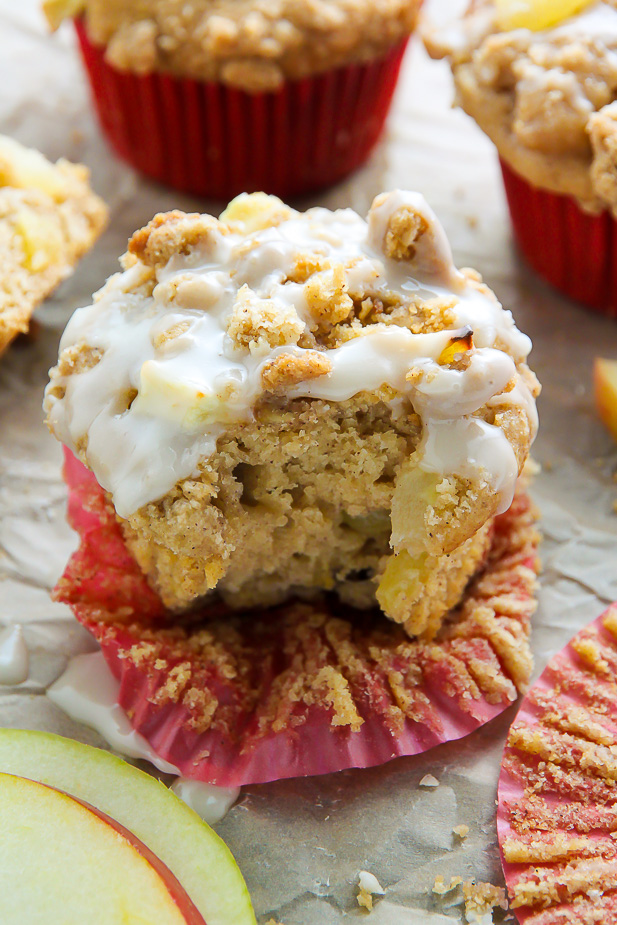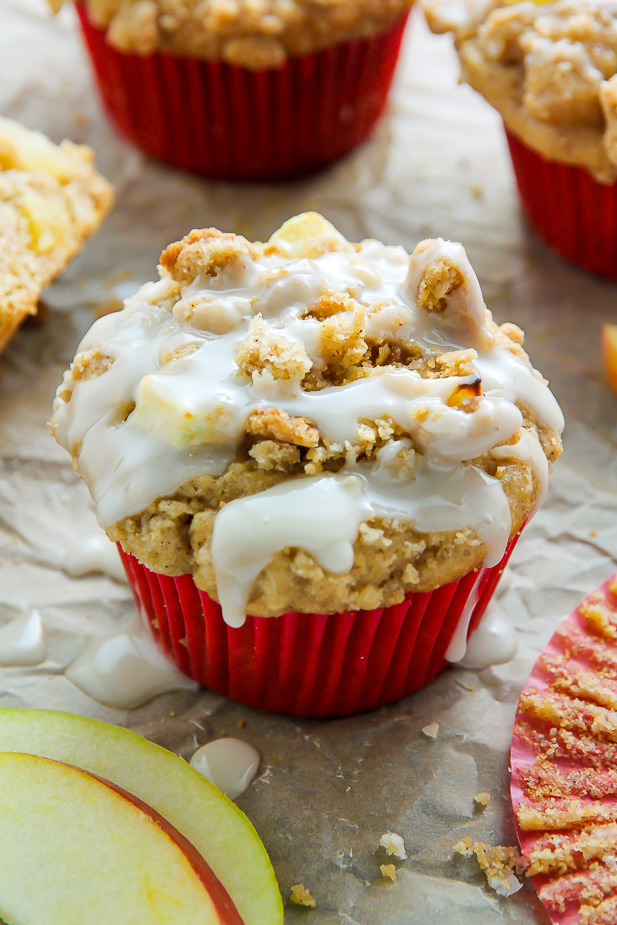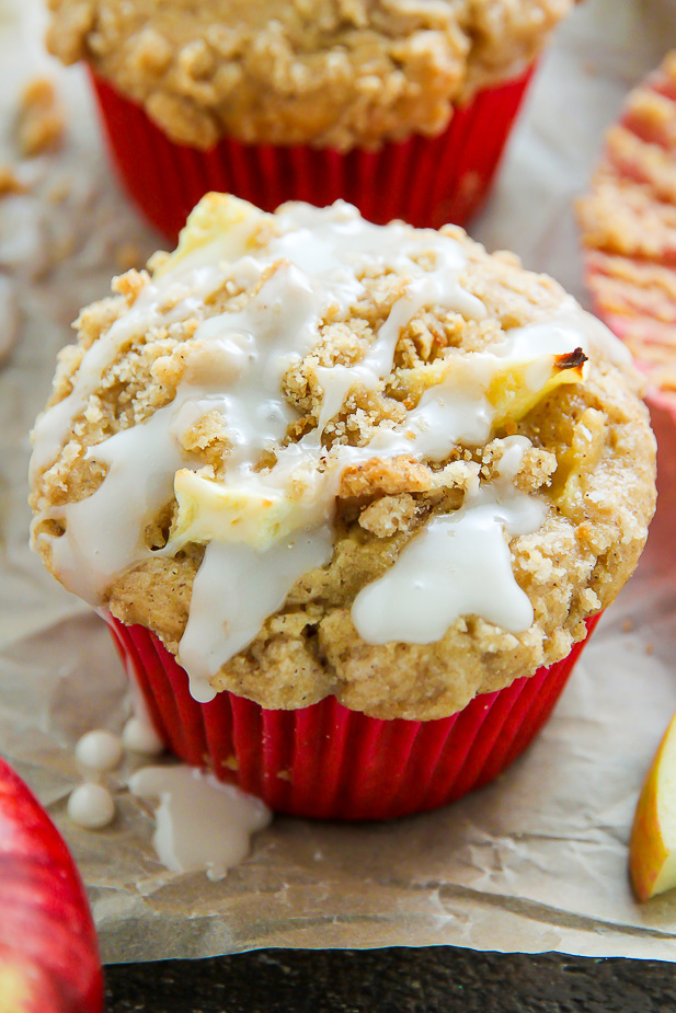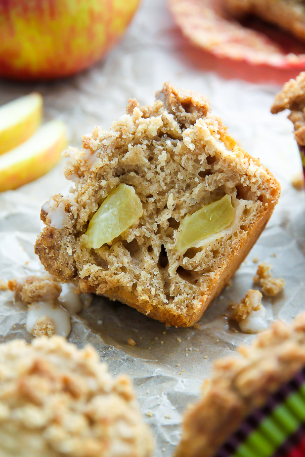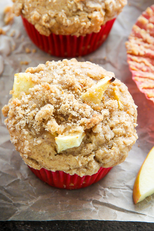 Simple and supremely moist apple muffins topped with melt-in-your-mouth buttery crumbs.