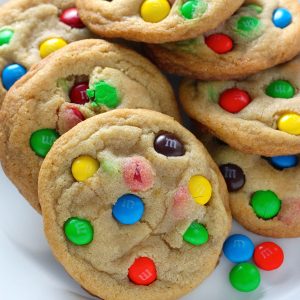 My boyfriend wanted me to make him some m&m cookies so I made these with dark chocolate ones. They were a hit! I appreciate that the recipe didn’t require chilling the dough but they still turned out perfect. Nice size to them as well if you go with the 3T/ 1/4 c measure.