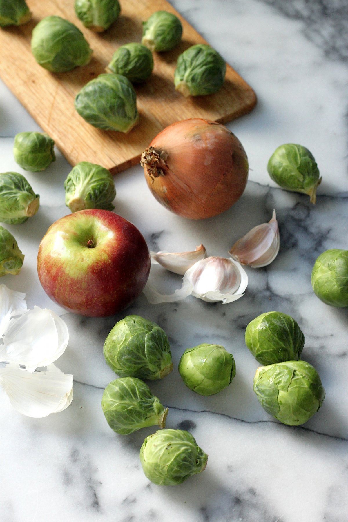 For the Caramelized Brussels Sprout, Onion, and Apple Slaw: