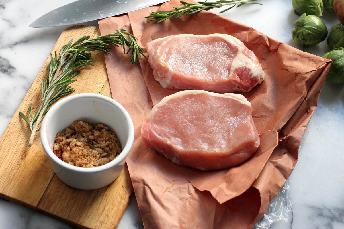 - Spread about 1 tablespoon of the spice mixture on each side of the pork chops, and using your fingers massage it into each side. Wrap each pork chop tightly in a piece of cling wrap, and place in the refrigerator for at least 20 minutes, and up to 24 hours.