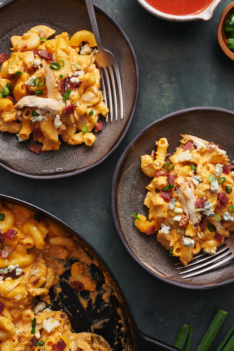 Crunchy, creamy, cheesy, and just a little bit spicy, this buffalo chicken Mac & cheese is textbook comfort food! Perfect for game day, holidays, or any day you’re looking to serve a crowd.
