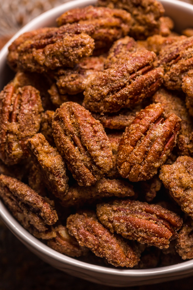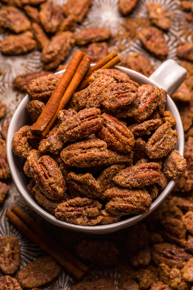 - Made with basic pantry staples like pecan halves, brown sugar, white sugar, cinnamon, and salt. For a fun sweet and spicy twist, try adding a pinch of cayenne. I do a 1/8 teaspoon in mine and it’s delightful!