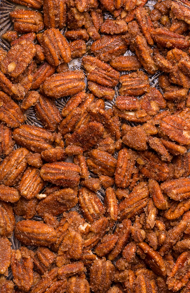 - After baking, the candied nuts are super crunchy and stay that way for weeks on end! Because soggy candied pecans are so sad