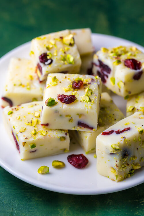 White Chocolate Cranberry Pistachio Fudge