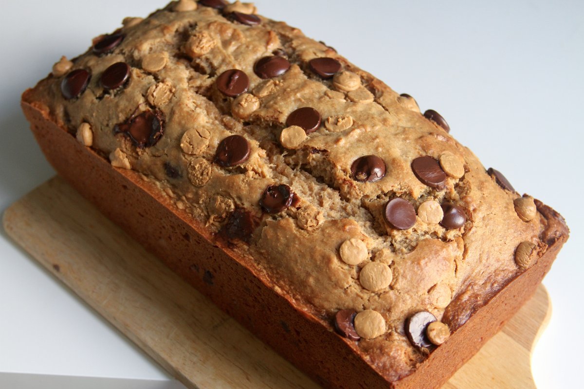 Whole Wheat Peanut Butter Banana Bread with Chocolate and Peanut Butter Chips