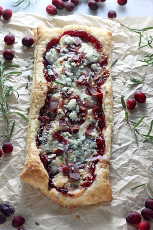 Cranberry Sauce, Bacon, and Gorgonzola Pastry Puff Pizza