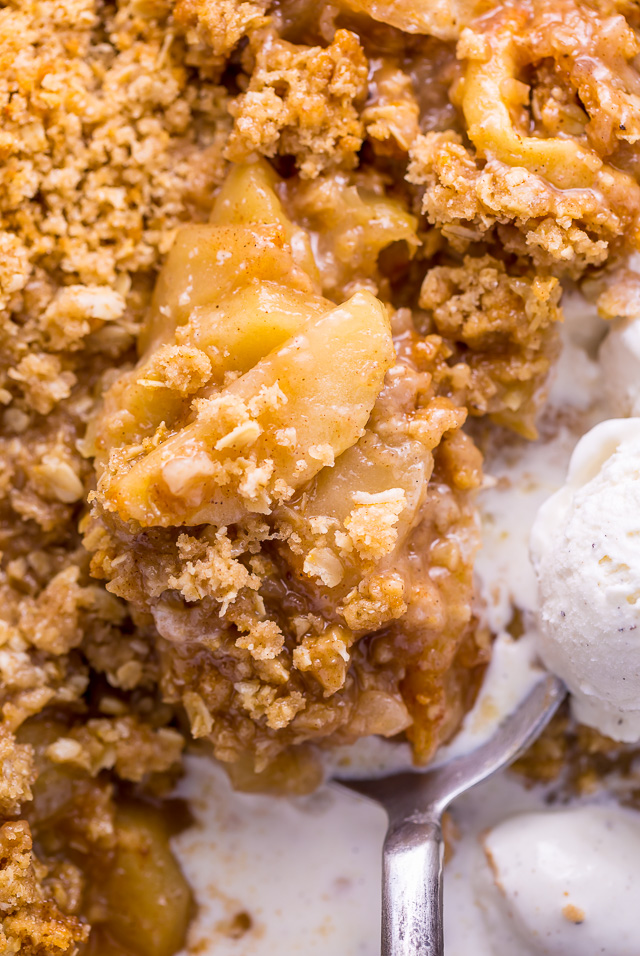 Love apple crisp? Then you have to try this Chai Spice Apple Crisp! The apples are coated in warming spices like cardamom, allspice, cinnamon, cloves, and ginger! And the buttery oatmeal crumb topping is sweet, crunchy, and just begging to be topped with a big scoop of vanilla ice cream! This is the ULTIMATE Fall dessert, if you ask me!