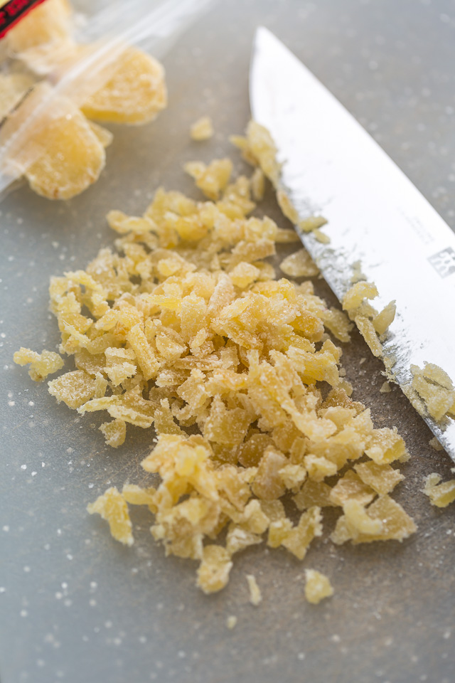 - 1/2 cup crystalized ginger, minced