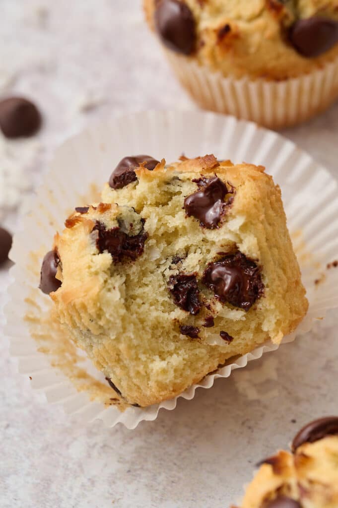 Coconut lovers will go crazy over these chocolate chip coconut muffins! Exploding with coconut flavor thanks to coconut milk, coconut oil, and coconut flakes. For double coconut muffins, sprinkle sweetened shredded coconut on top of the muffin batter in the muffin pan.