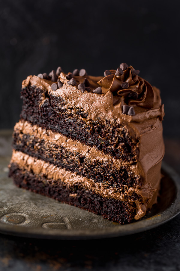 Who knew shredded zucchini was the secret ingredient to the best chocolate cake ever? Bursting with rich chocolate flavor and covered in dark chocolate frosting, you’d never know there’s two cups of grated zucchini inside this chocolate cake.