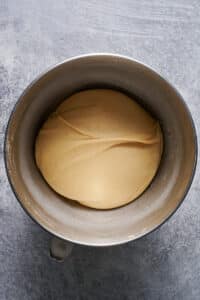 - Step 1: Make the dough! You’ll do this in the bowl of a stand mixer. Be sure you have the dough hook on and not the paddle attachment. Once it’s assembled, you’ll cover the bowl with plastic wrap and set aside for 1 hour, or until it’s puffed up and doubled in size.