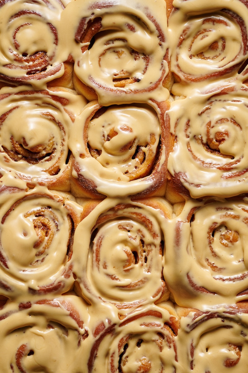 - Slowly spread the warm rolls with the molasses cream cheese frosting.