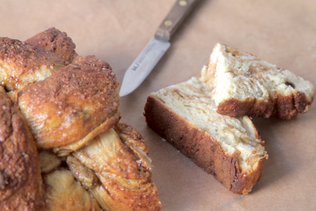 With streaks of cinnamon-sugar, speckles of vanilla bean, and even a few drunken raisins, this is one bread that will 100% have you challah back. Challah!