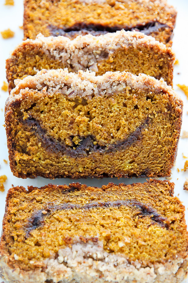 They say “sugar & spice and all that’s nice…” but actually it’s “pumpkin & spice and everything’s nice…” What a cake with all the spices and that cinnamon swirl is just another story, not to mention the crumb topping!! Wow! Thanks for such an amazing recipe!!