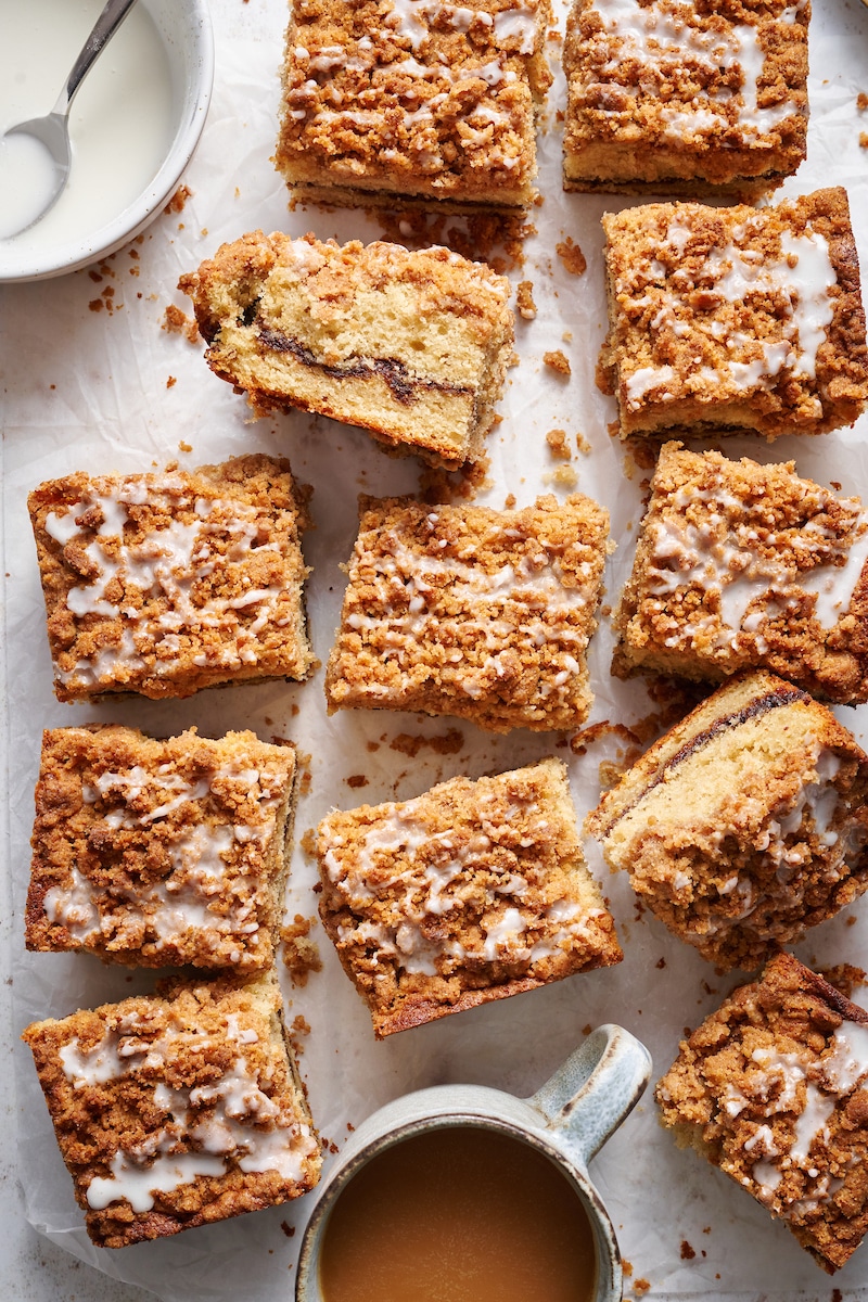 But after much thought, I decided what the heck… I’m going to break tradition and make a coffee cake that actually has a little caffeine in there! Which is exactly what I did here. You see, I snuck some espresso powder into the cinnamon swirl, and it adds a delightful yet subtle coffee flavor as well as helps keep the color of the swirl dark and defined. All of that being said, you can absolutely skip that ingredient and make the traditional coffee-less way. It’ll still be delicious!