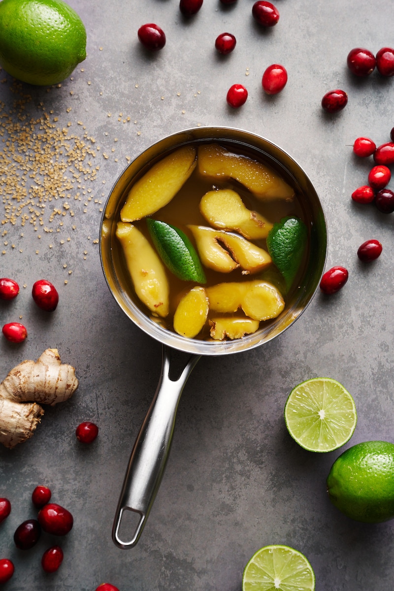 And these aren’t just any cranberry margaritas! They’re spiked with the most deliciously festive ginger simple syrup, and they’re made in a pitcher, which is so much easier than busting out a cocktail shaker and making single serving cocktails for every guest. I’ll go into more detail about every ingredient below, but I also understand if you jump to the recipe and get to making these immediately. It IS Friday after all *wink.