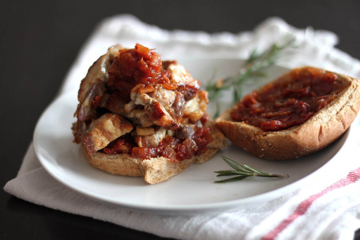 Crispy Pork Belly & Rosemary Tomato Jam Burgers – Baker by Nature
