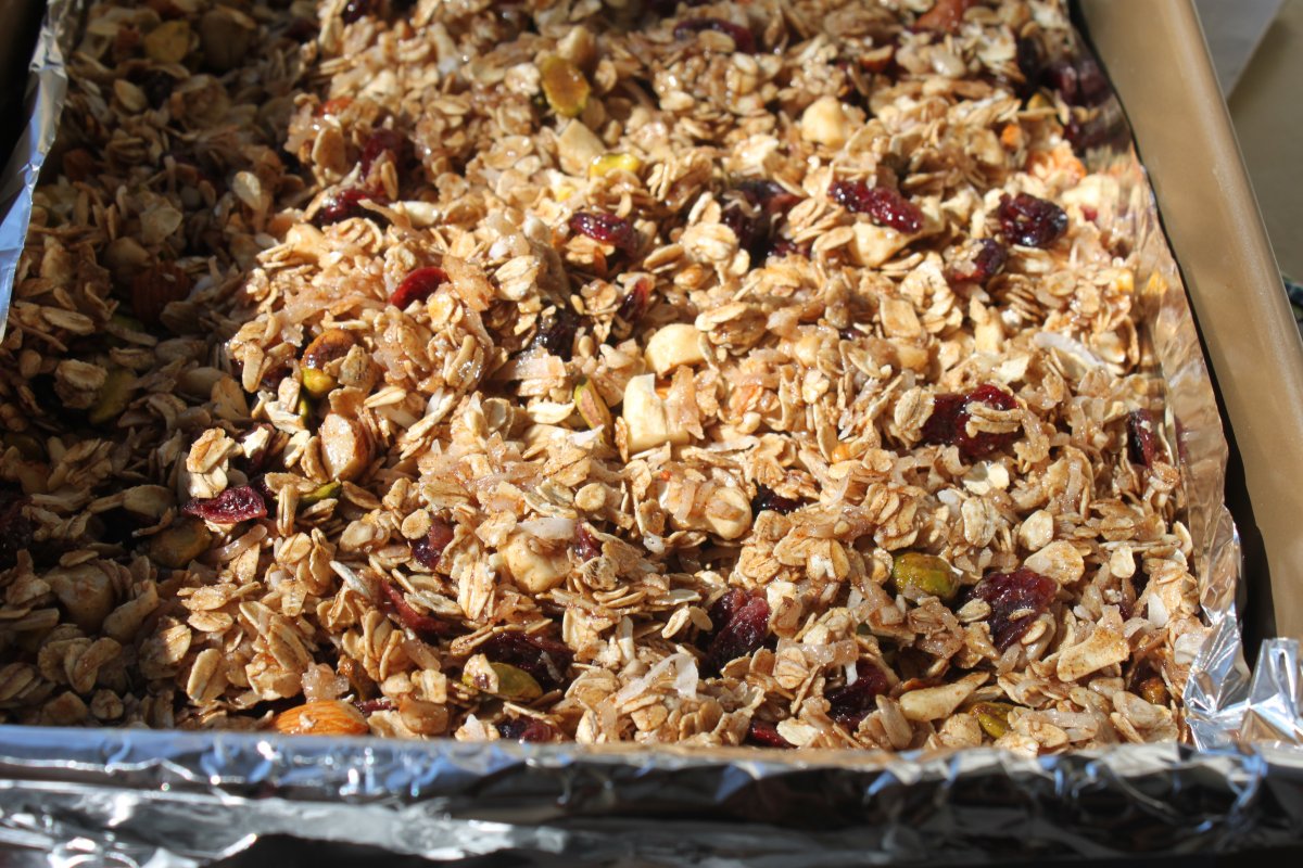 Granola is vastly adaptable, which to me, makes it even more attractive. Add whatever you please, twist it around and make it all your own. The base to granola is old fashioned oats. Then you can really take it wherever you want.