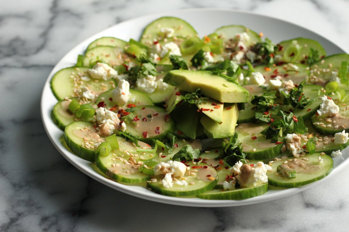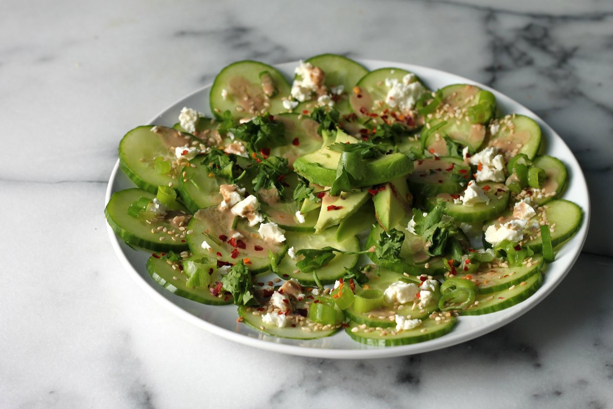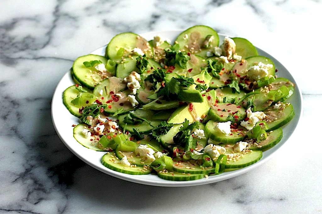 Cucumber & Avocado Carpaccio with Soy Ginger Dressing – Baker by Nature