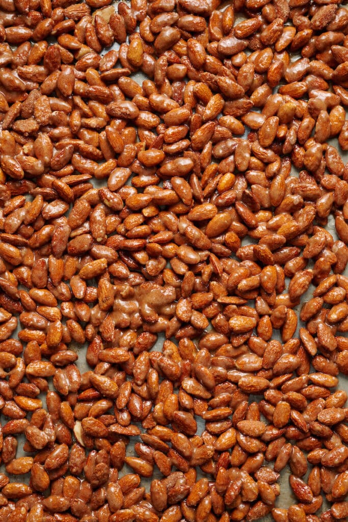This recipe yields a TON of delicious cinnamon roasted almonds! Yu’ll definitely have leftovers. The best way to store them is in an airtight container, for up 2 weeks at room temperature. If want to keep them really long, do candied almonds and use my instructions for freezing below!
