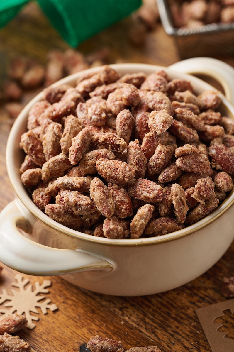 They’re very similar to my candied pecans, and make a wonderful homemade holiday gift idea! Add them to a mason jar, tie a ribbon around the top, and viola! You’ll have a gorgeous Christmas gift or hostess gift ready to go! You can also add them to my Christmas tree charcuterie board, which is the ultimate holiday appetizer.