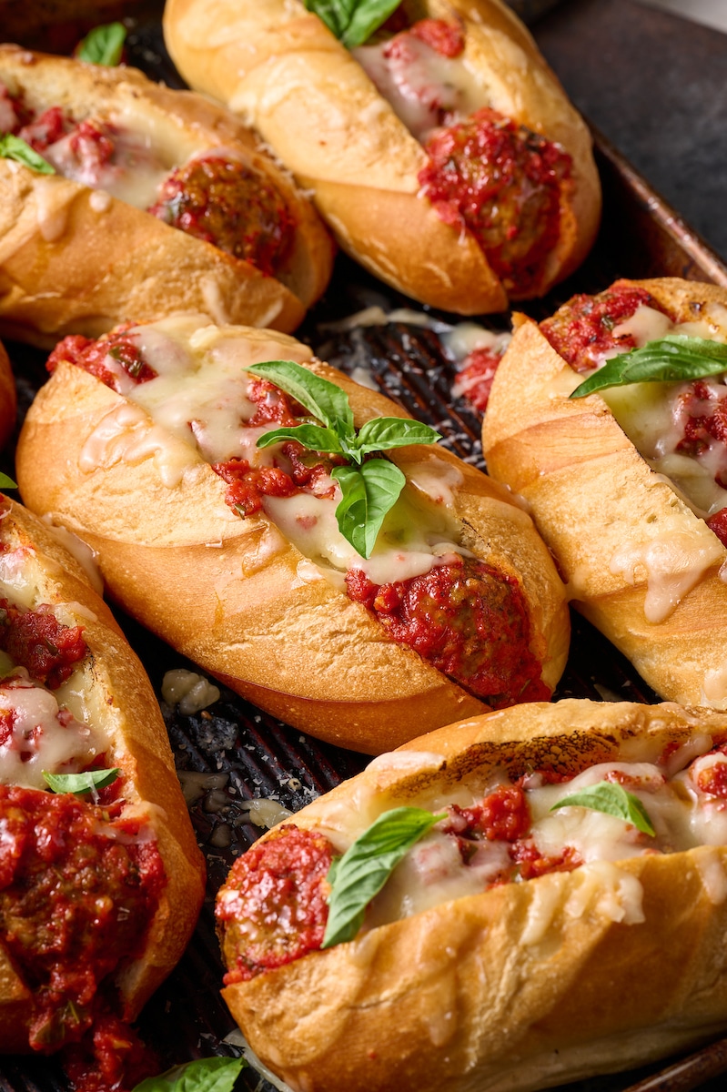 - Time for Cheese: Top the meatballs and sauce with shredded cheese. This will be nice and gooey once baked. Transfer the meatball sub sandwiches to a large baking sheet.