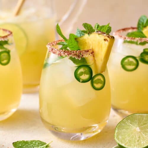 I just made these margaritas for a summer BBQ and they were a HUGE hit! The addition of spicy and pineapple was perfect, not too overwhelming and not too subtle. Will definitely be making these again!