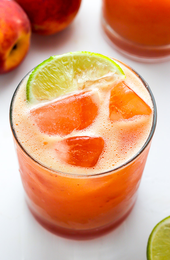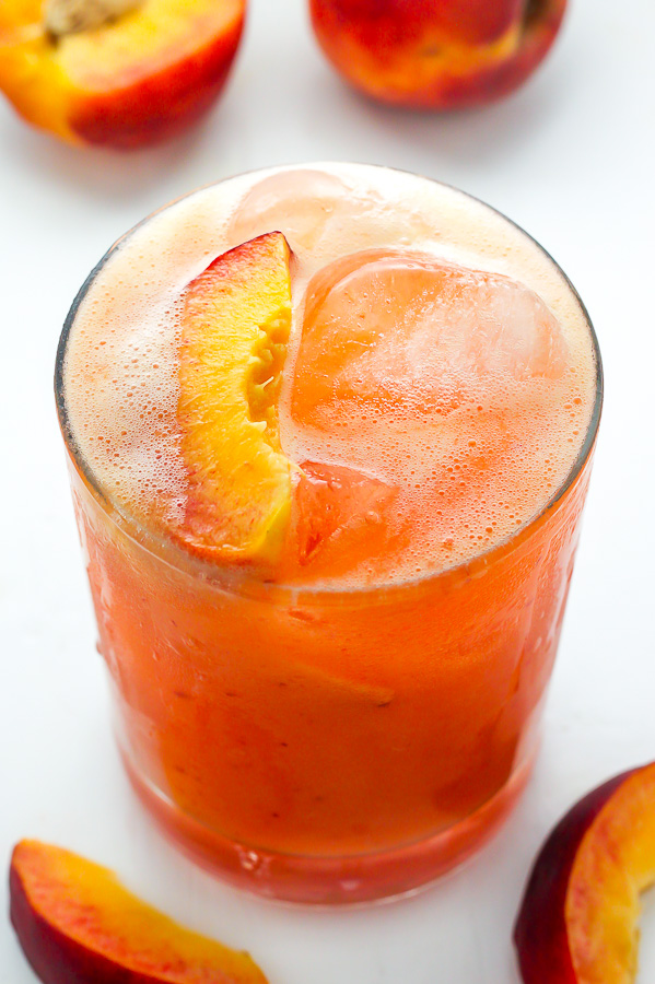 That’s where this utterly refreshing peach beauty comes in. The base of this drink is a fresh peach puree created by 3 ingredients: