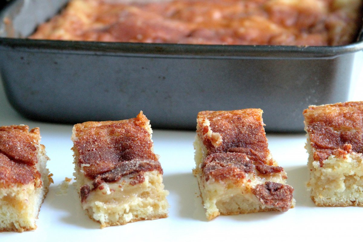 There are a lot of things that can be said about gooey cinnamon squares, but for this post, there are only three things you need to know: